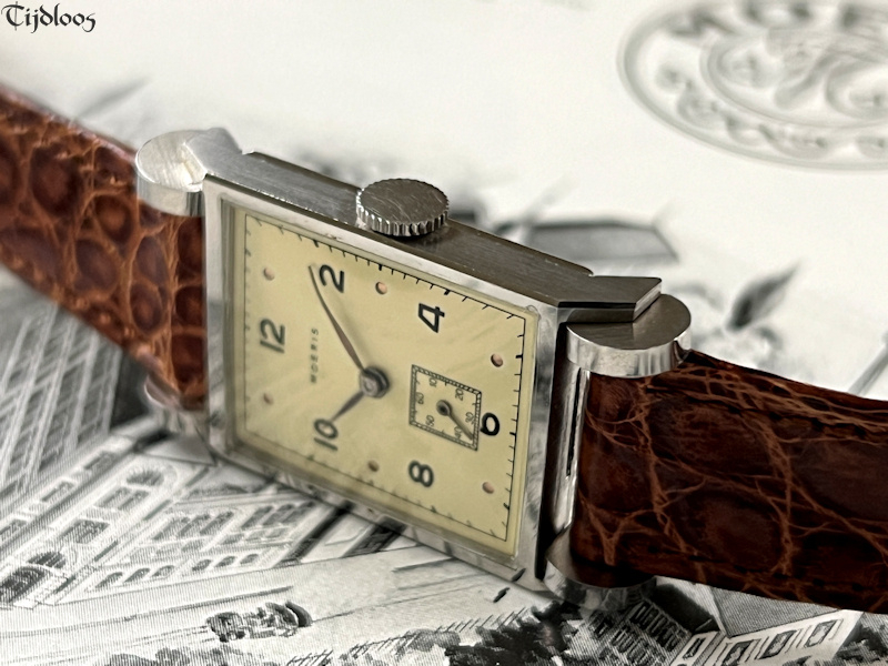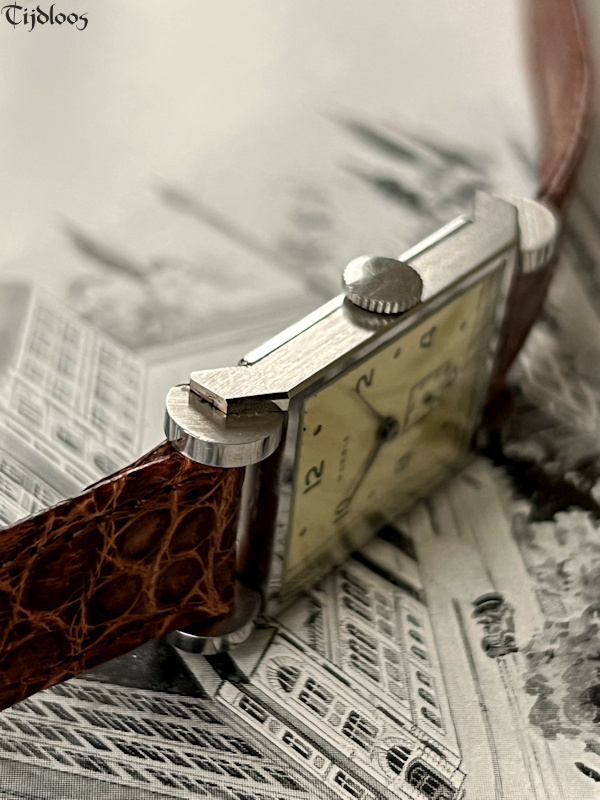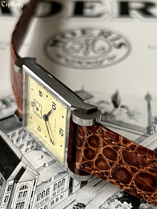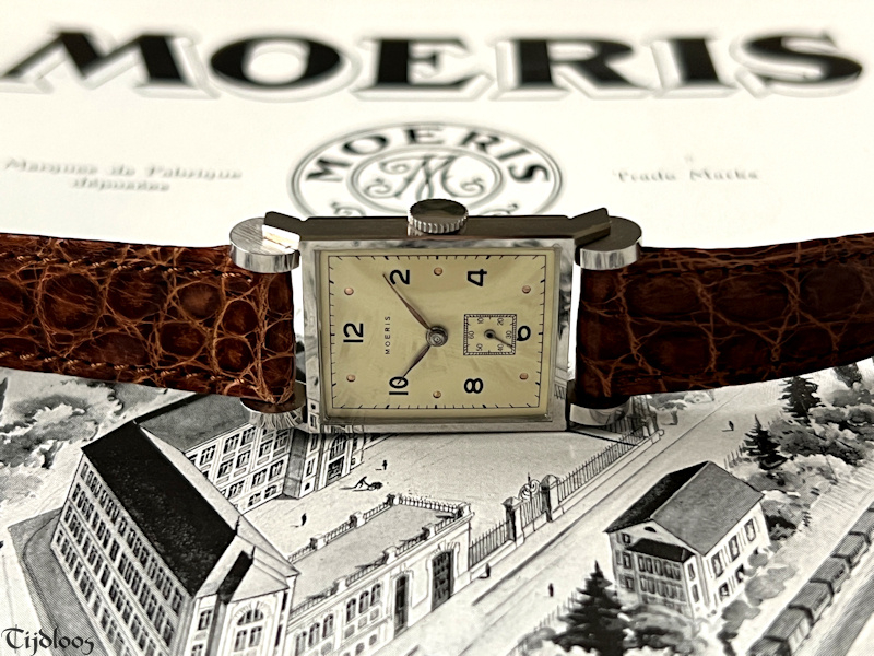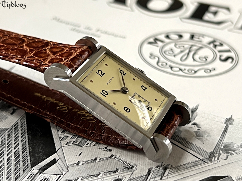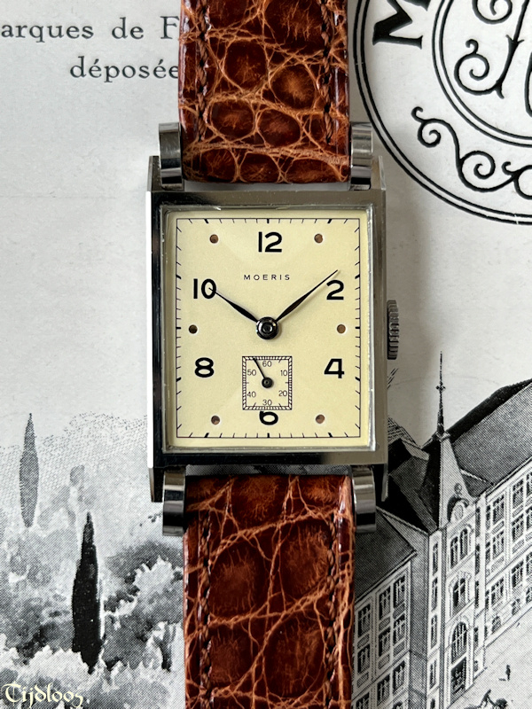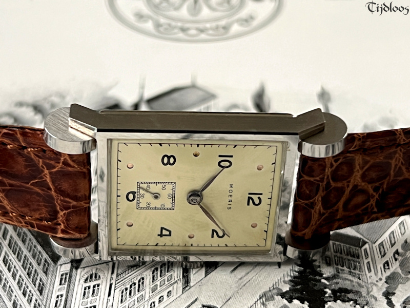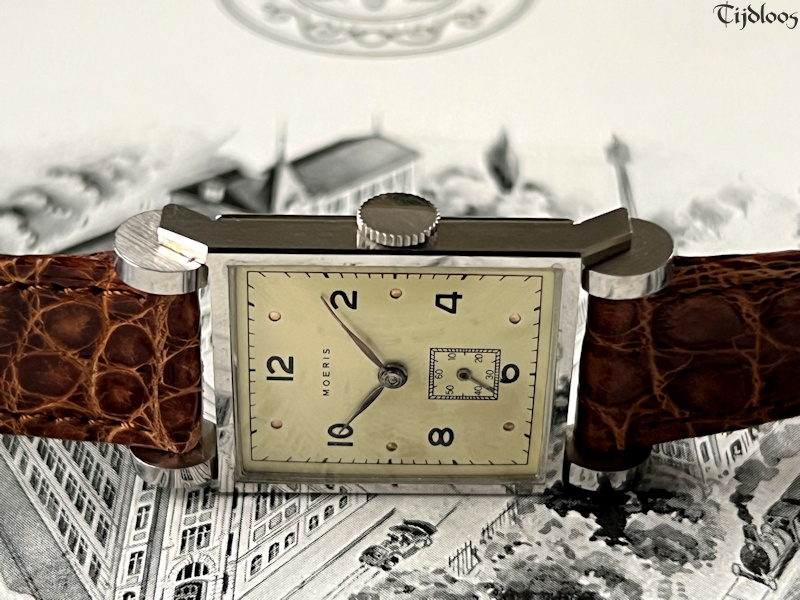 A…d r u m…r u f f l e...e f f e c t…this is so farfetched, so unique and beautifully designed, it looks like a watch on wheels. You will never see or find a second one like it. The case feels almost sharp to the touch, as if new. Inside you will find an inhouse Moeris movement 8¾ which was launched in 1930. It’s a high-quality fine movement, as Moeris was known to make all their own movements inhouse. The dial has been redone at some stage, neatly done though.